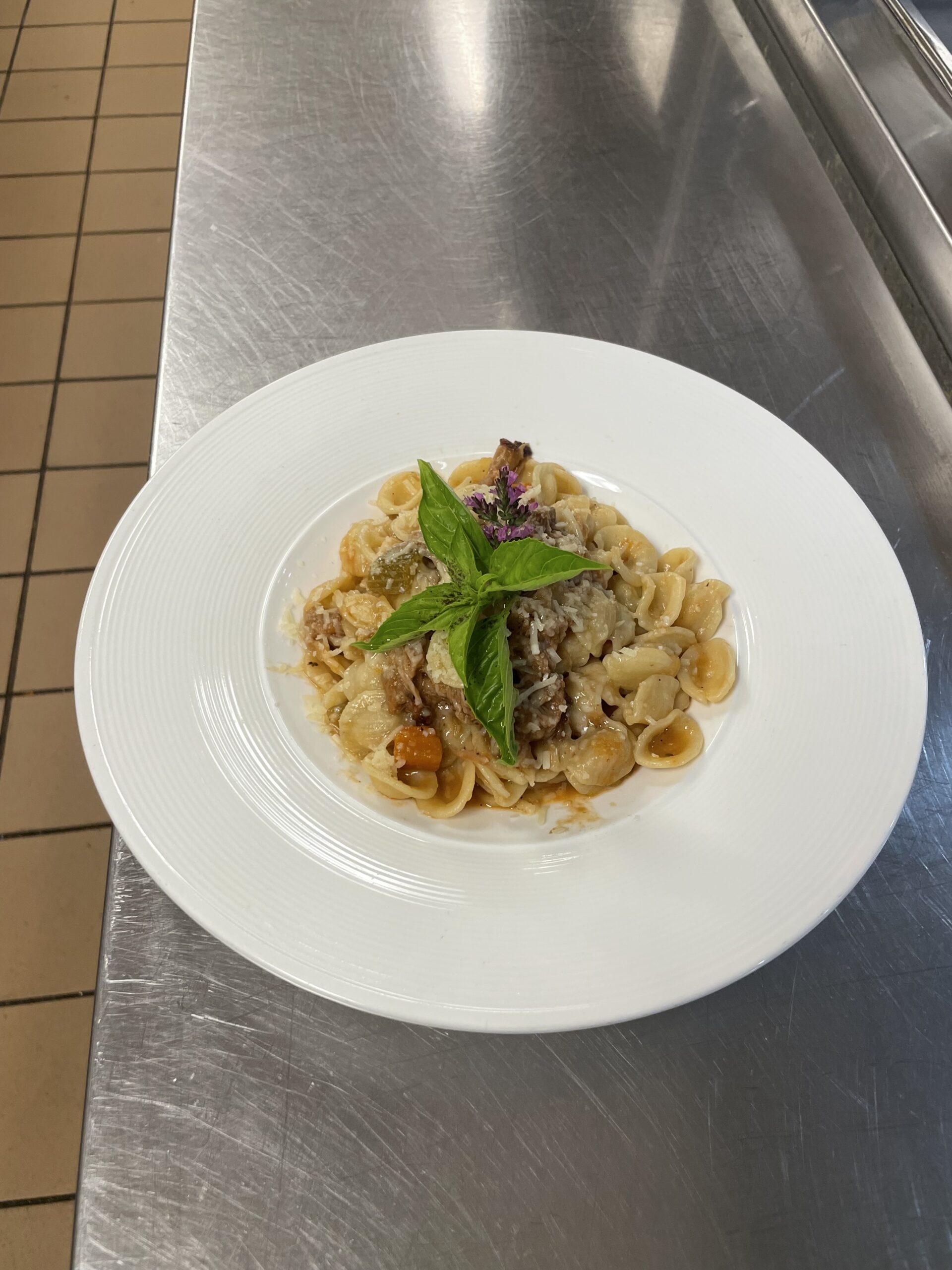 Chef Dan Murillo displaying the ingredients for Braised Pork Sugo and Orechiette Stufato